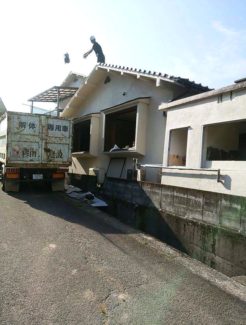 一般的には重機を使い解体しますが、重機や工事車両が通れない場合は、手作業での解体を行います。
